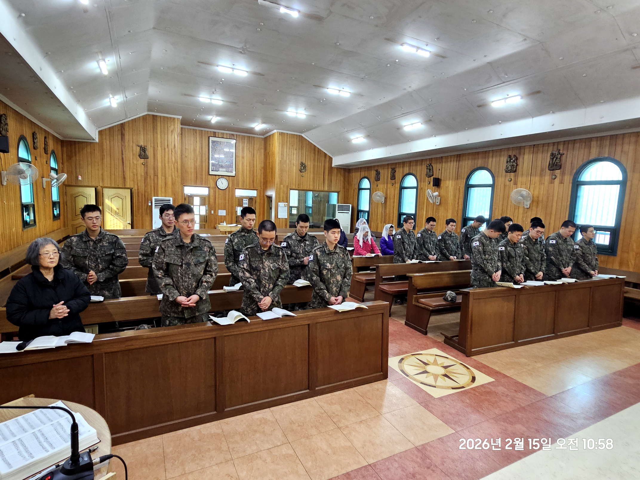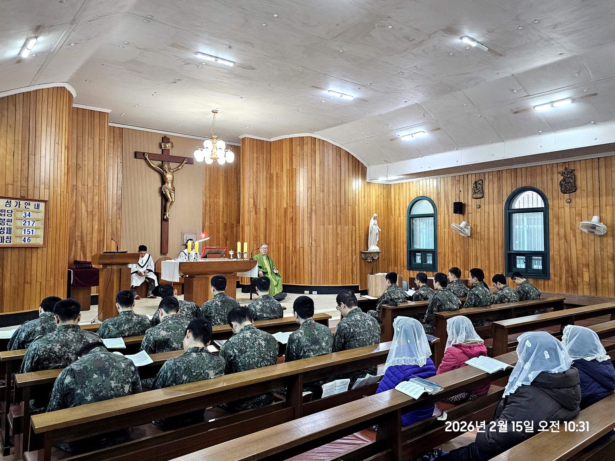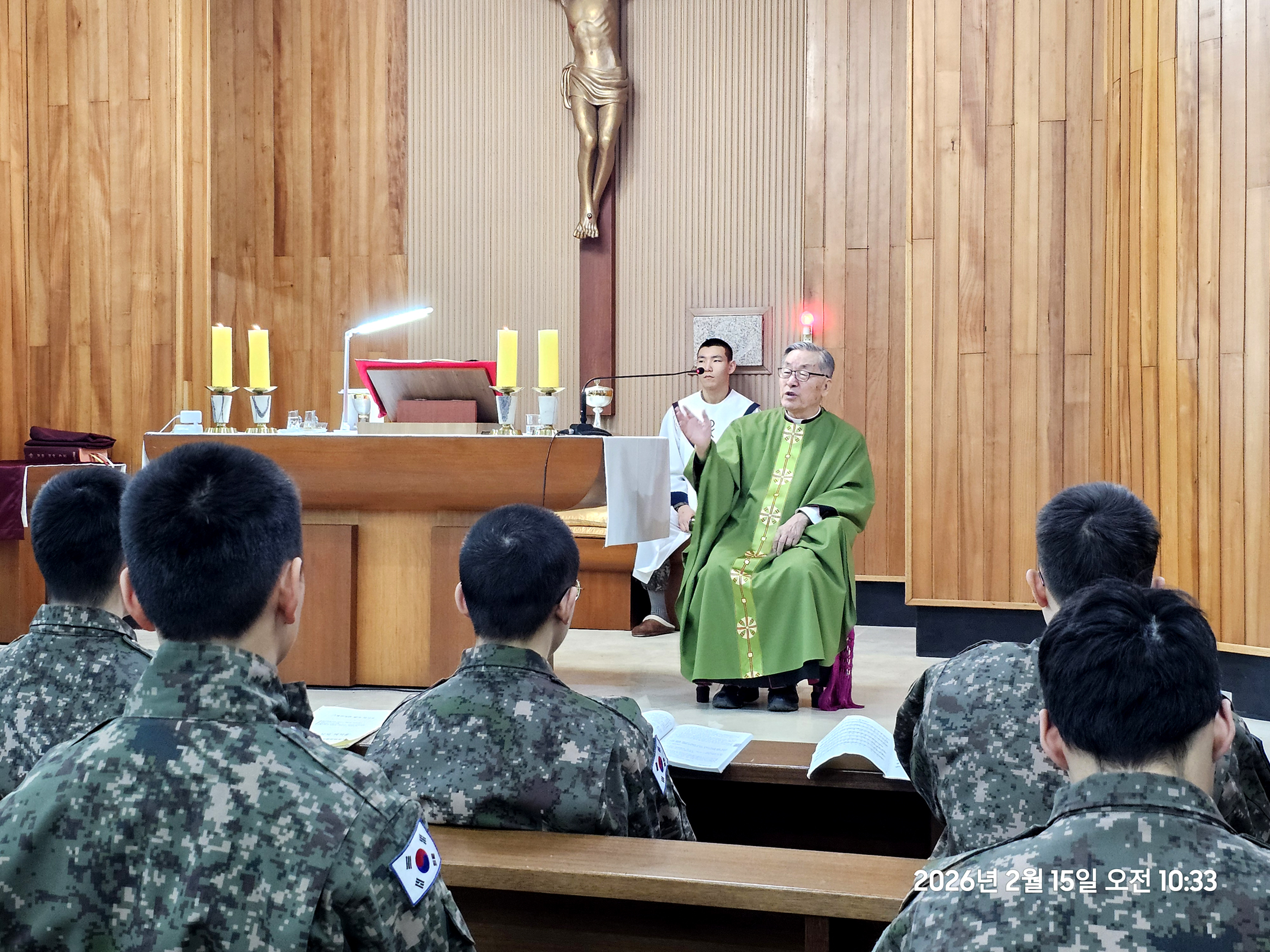 2026년 2월 15일 주일 오전 10시 주일미사에 22명 병사들이 주일 미사의 독서와 미사복사를 맡아 하면서,