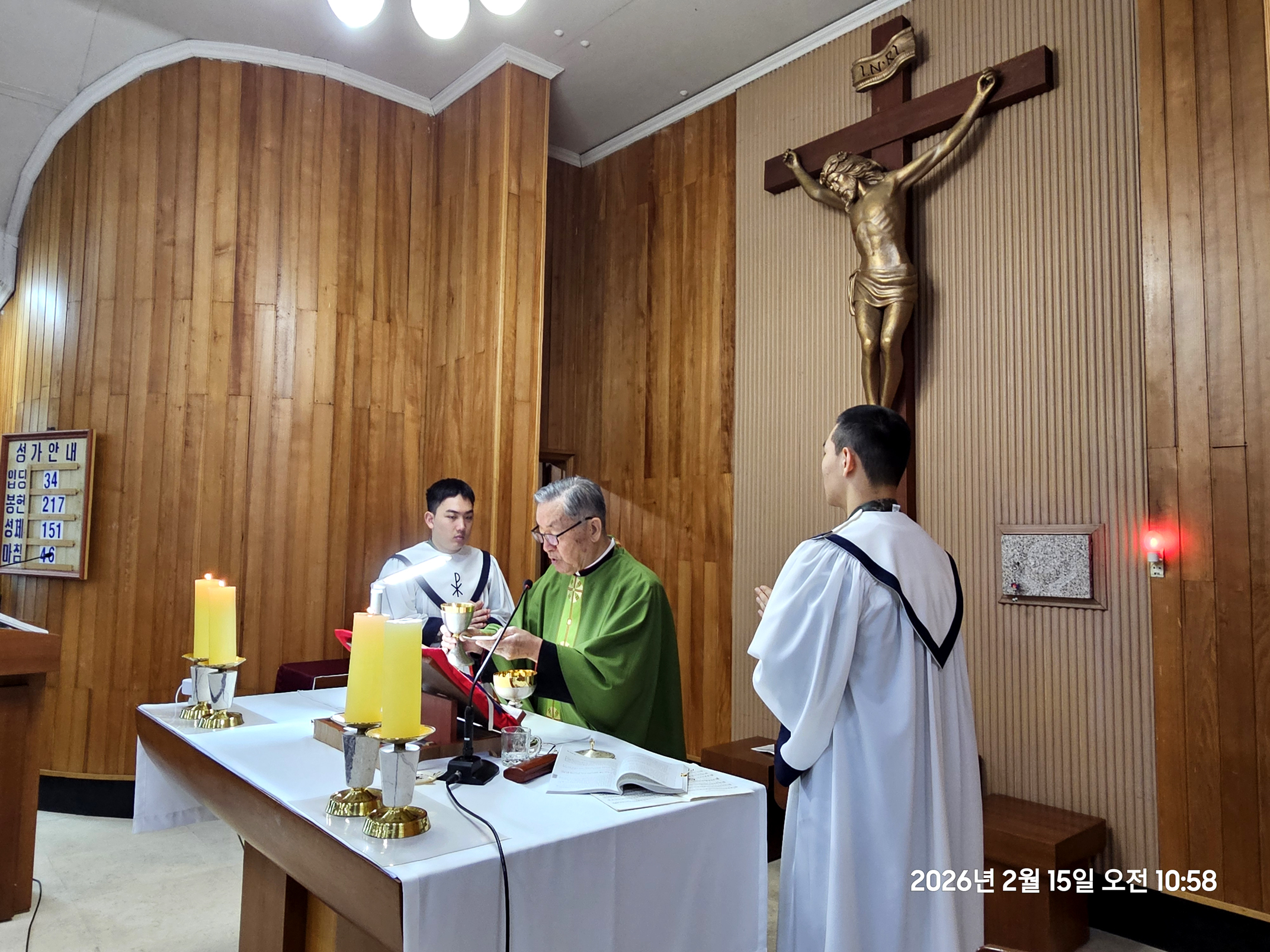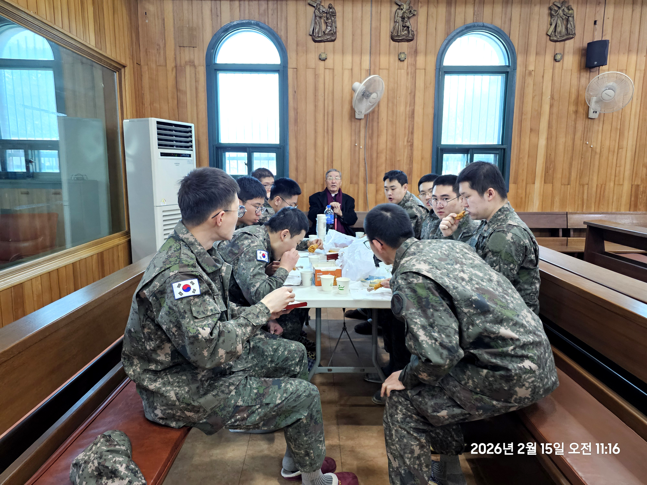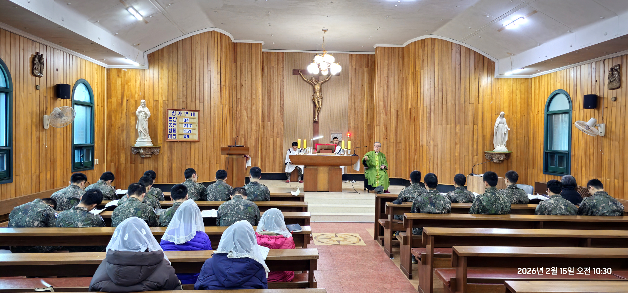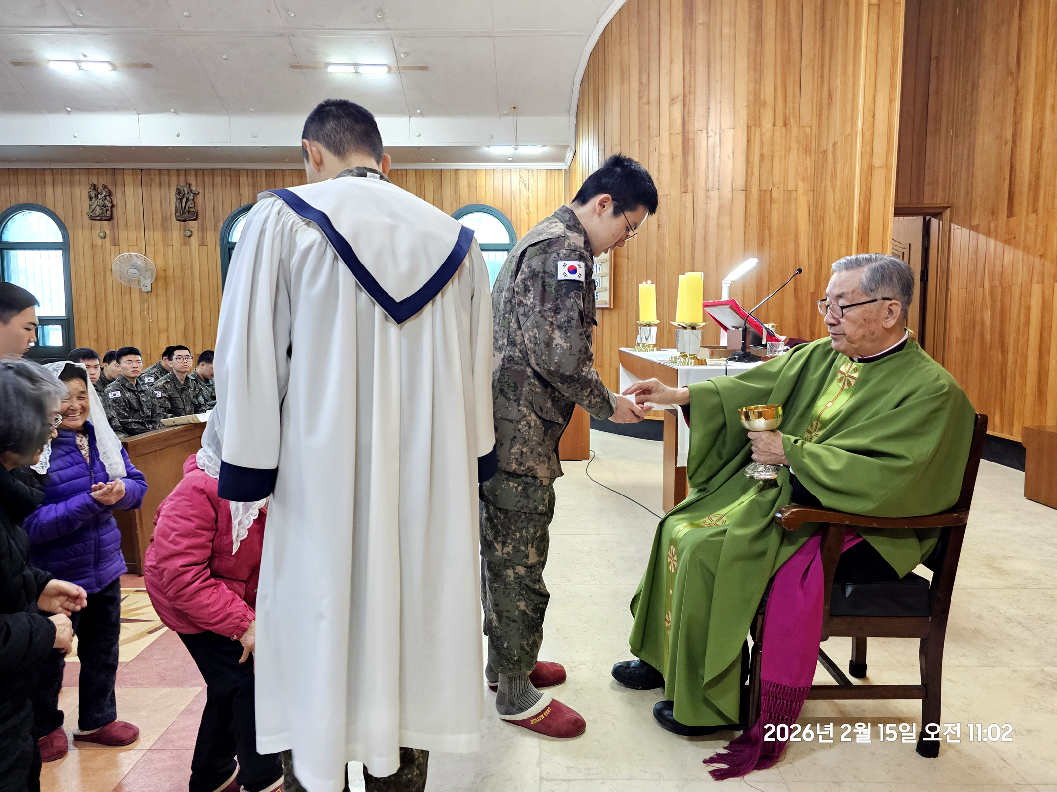 2026년 2월 15일 주일 오전 10시 주일미사에 22명 병사들이 주일 미사의 독서와 미사복사를 맡아 하면서,