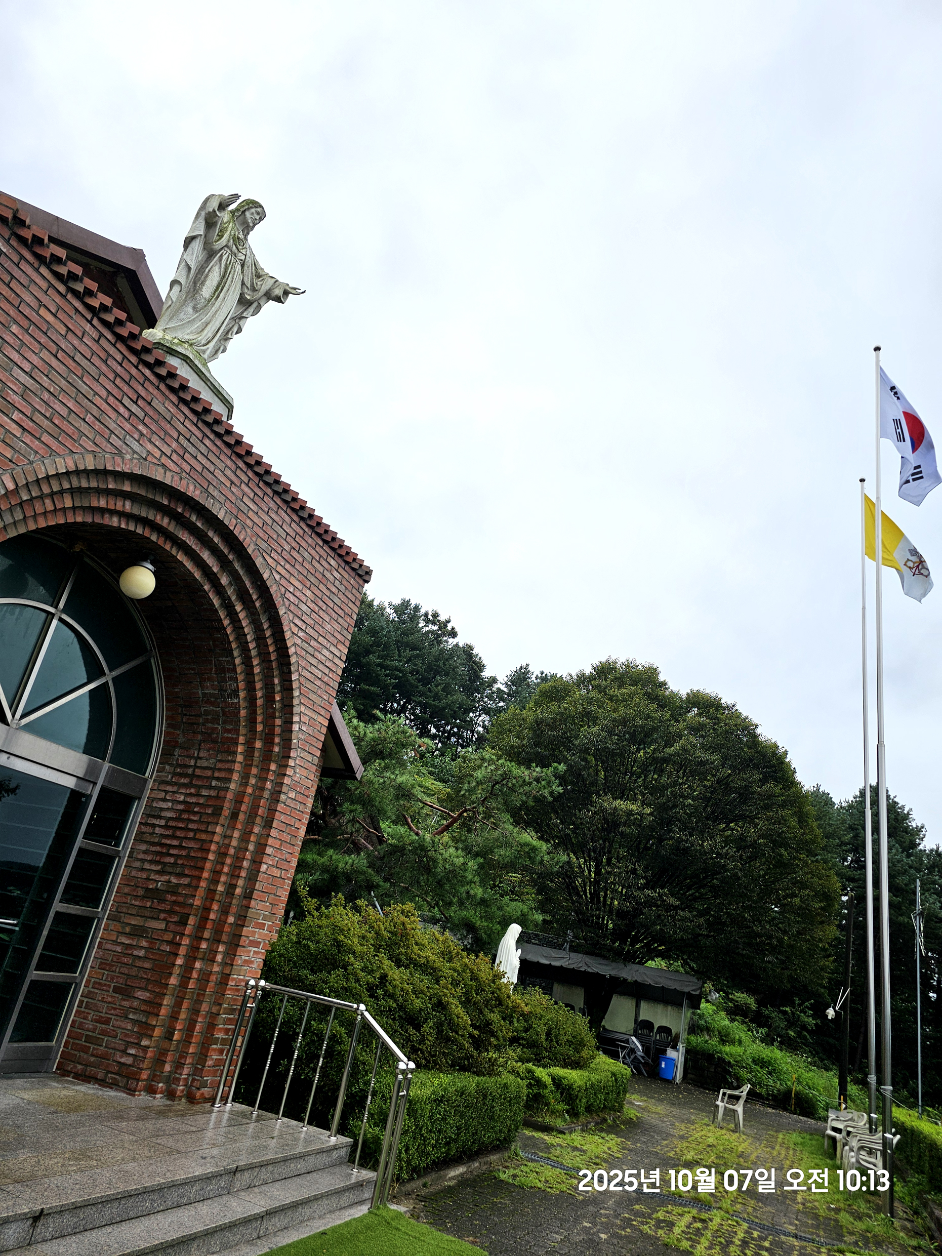 곡수성당 교황기. 태극기 교체(2025.10.07)