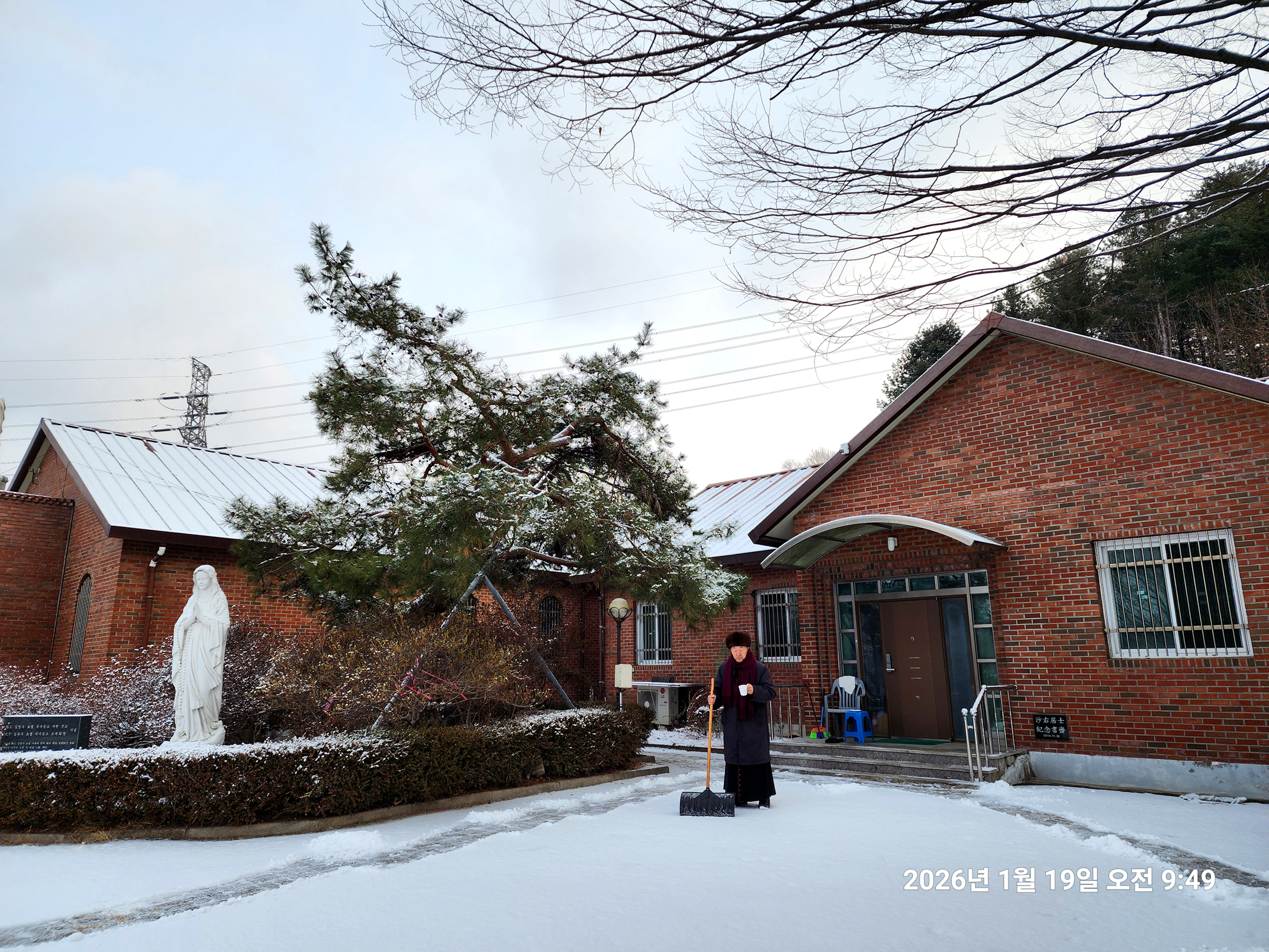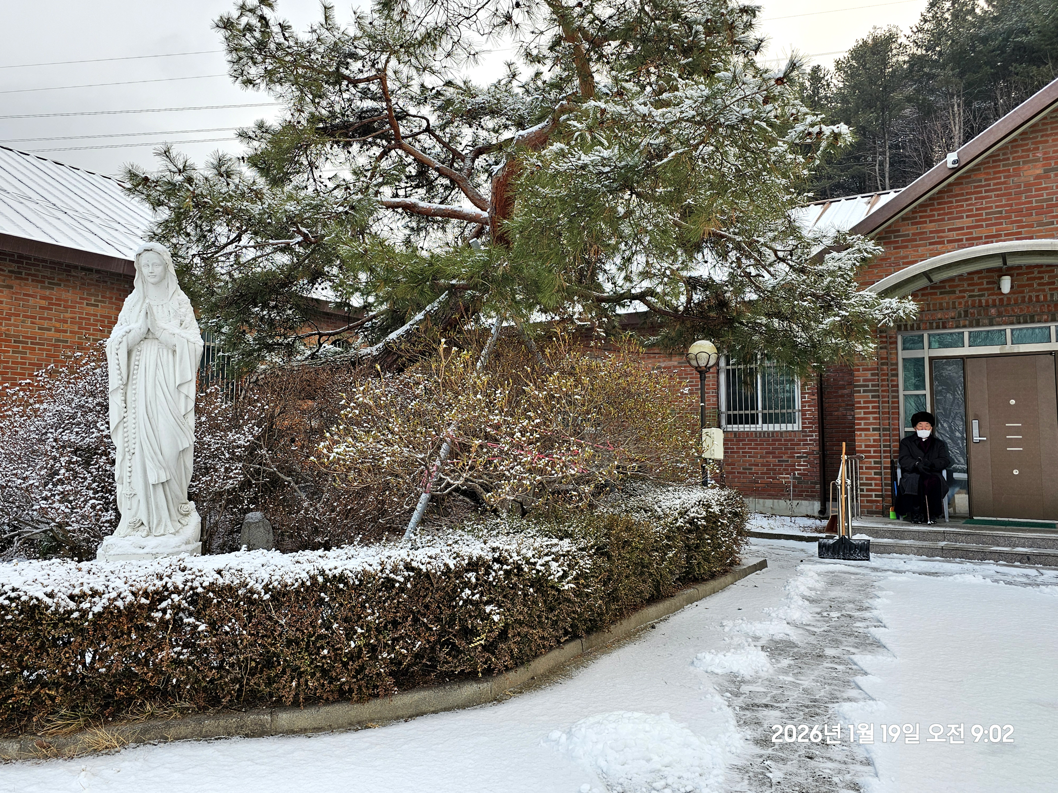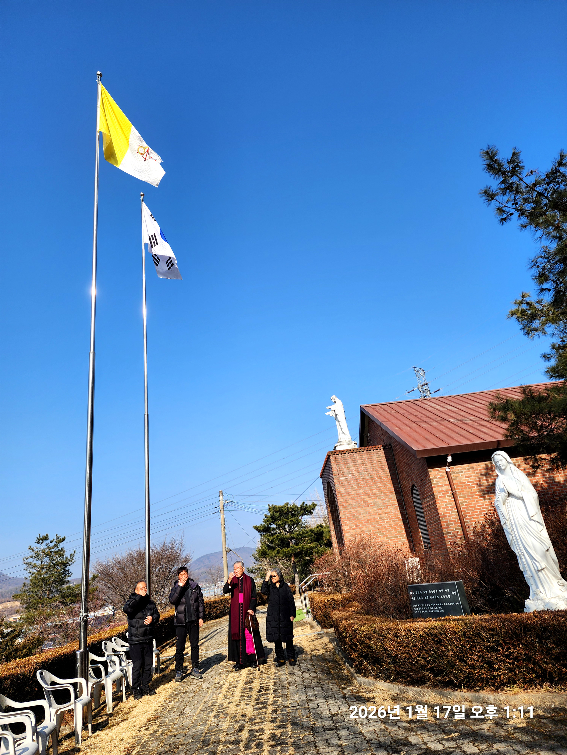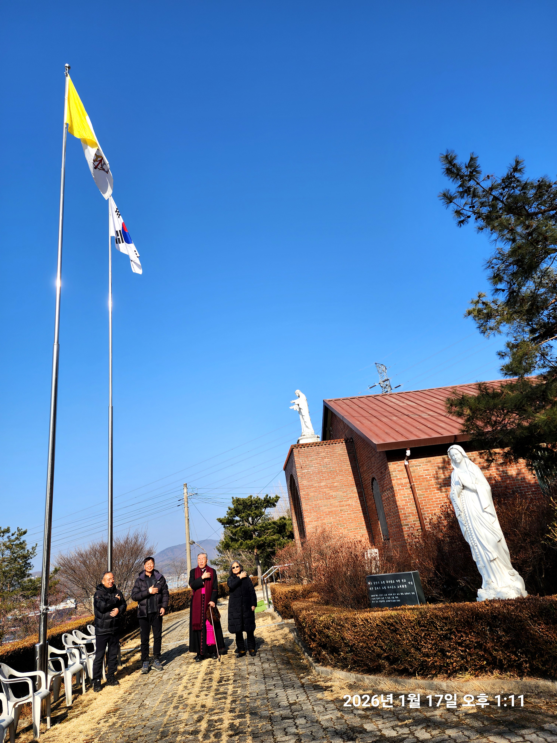 곡수성당, 태극기와 교황기 게양 후 기도와 애국가 제창(2026.01.13)