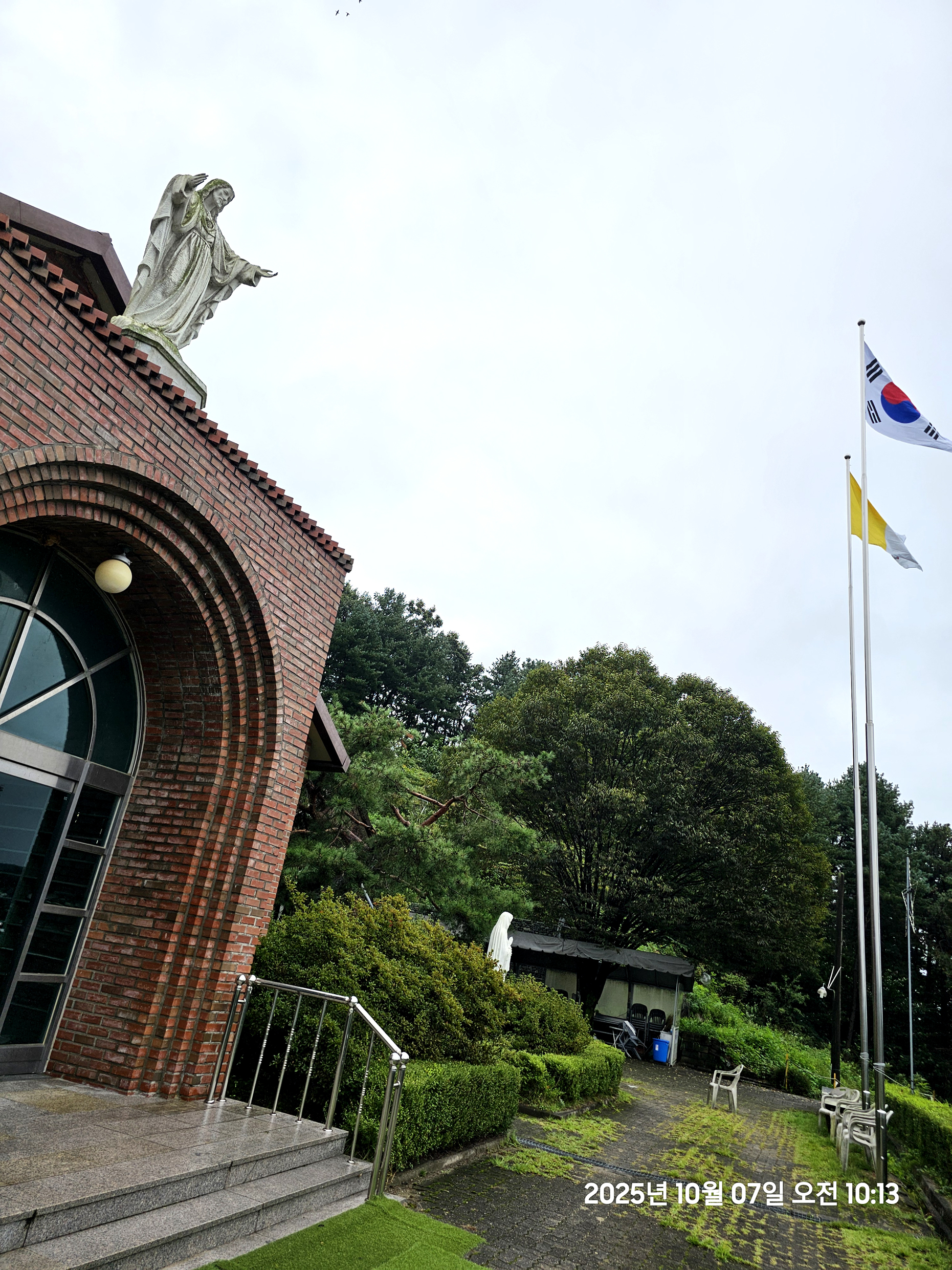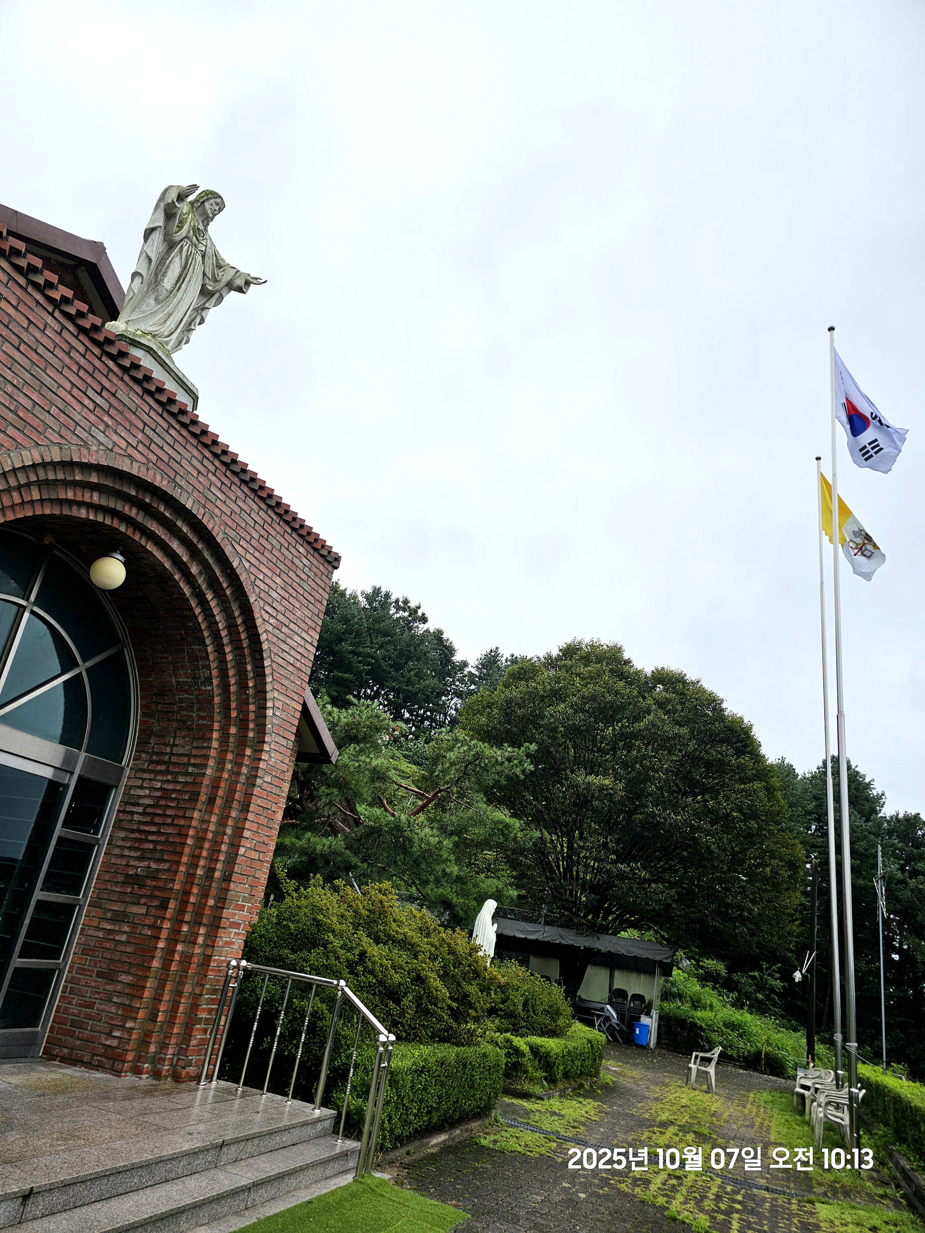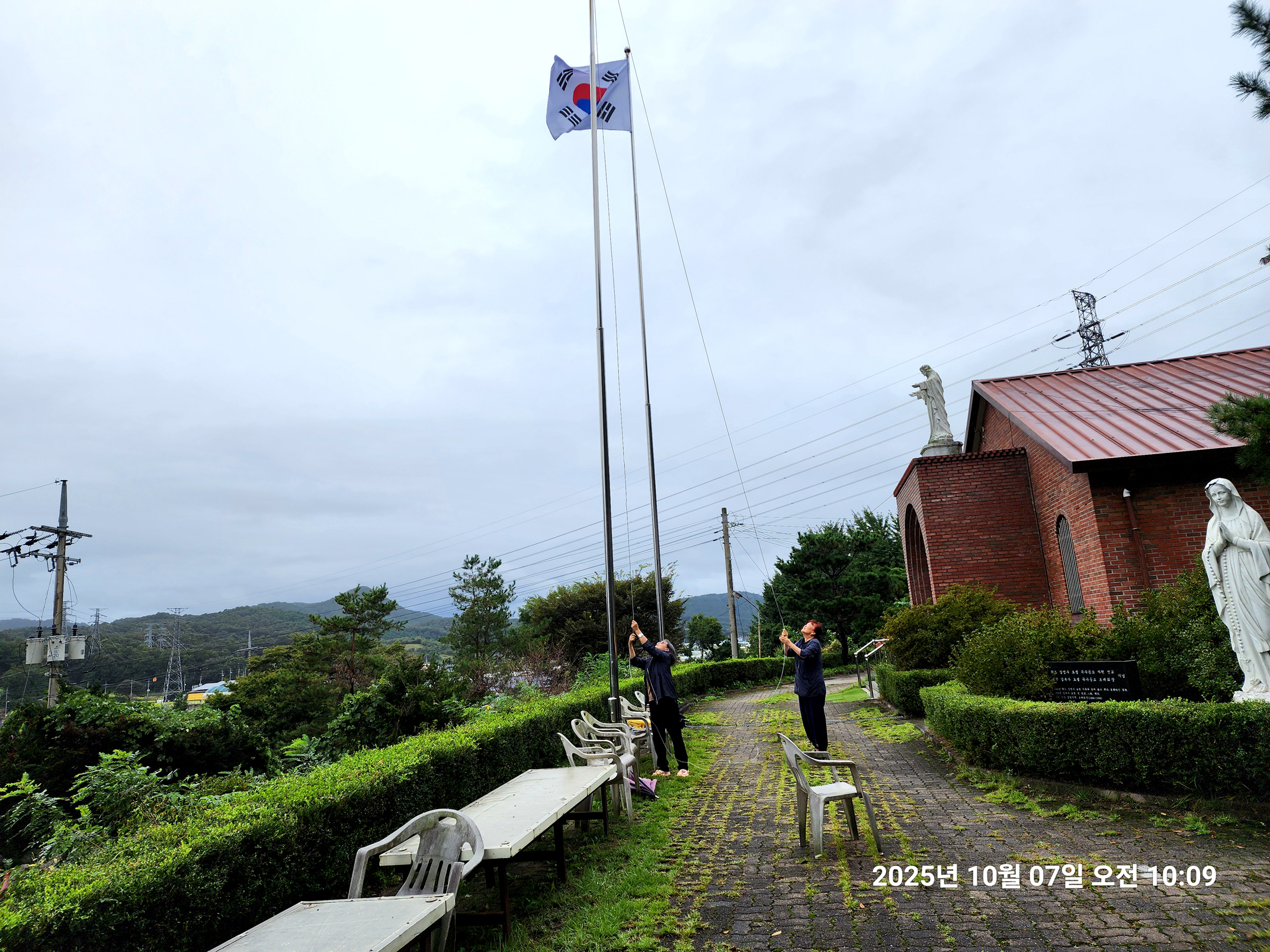 곡수성당 교황기. 태극기 교체(2025.10.07)
