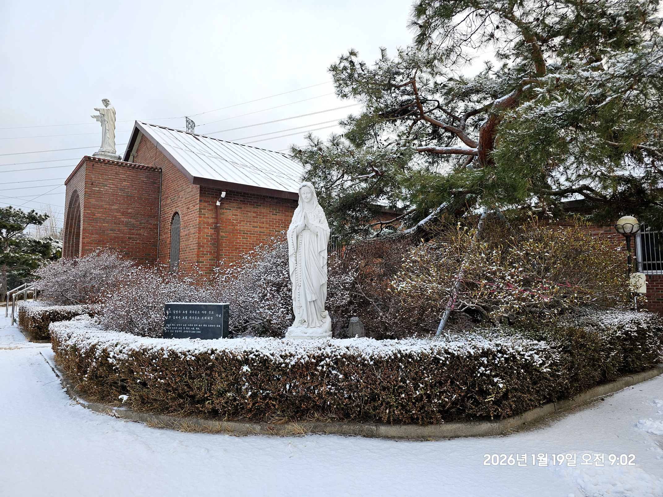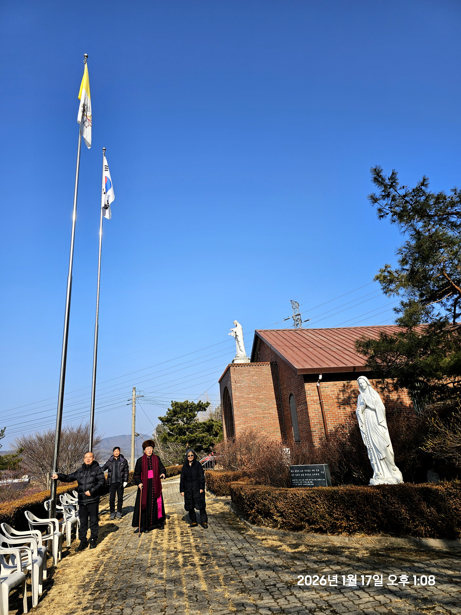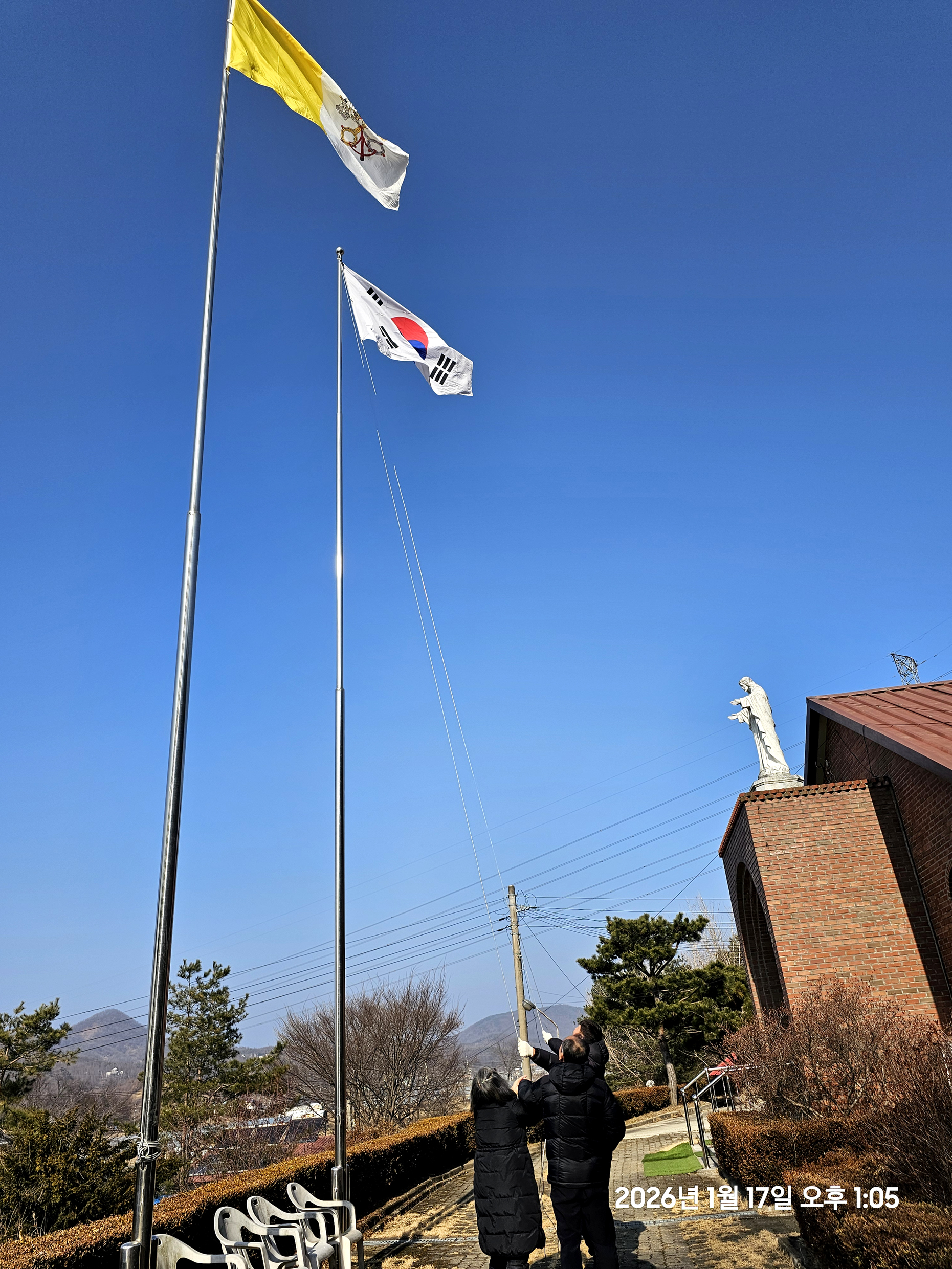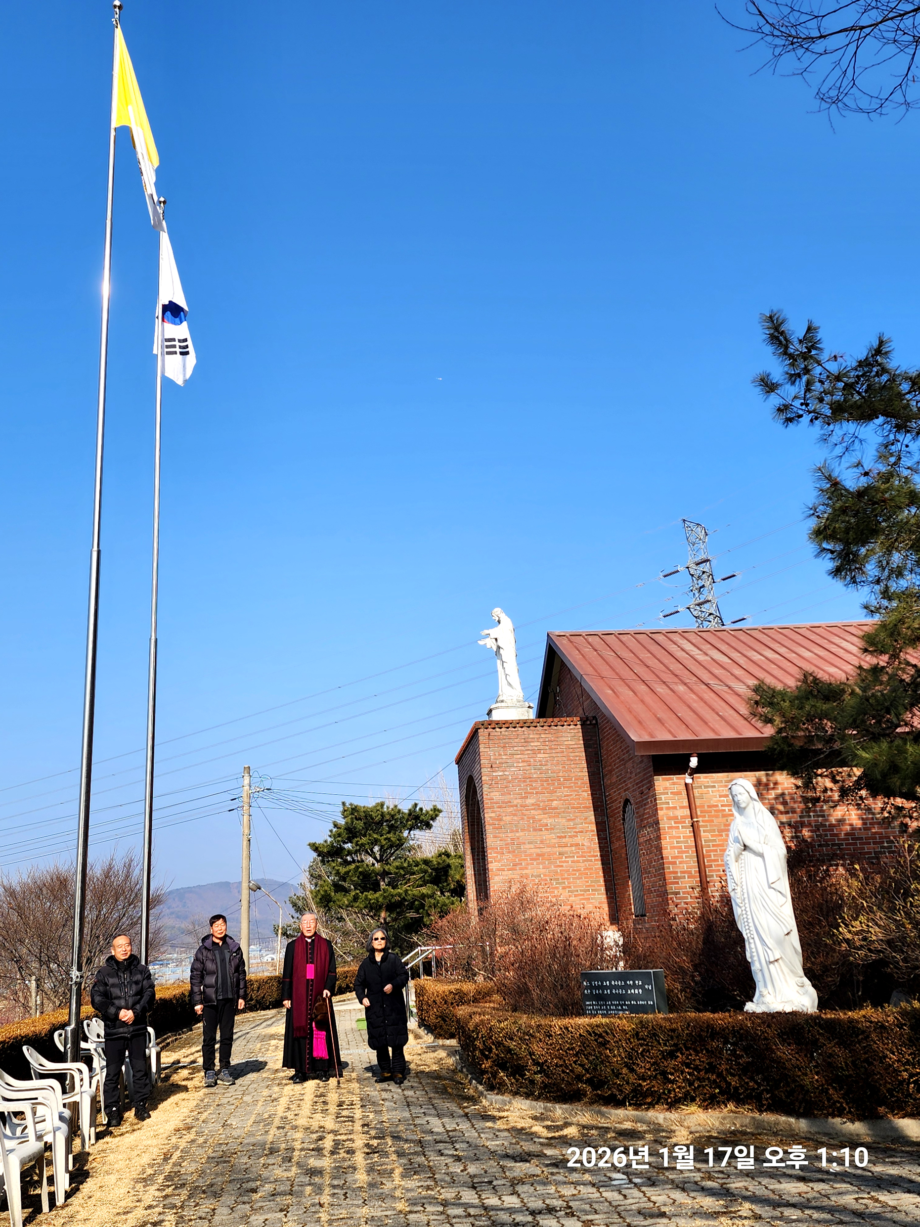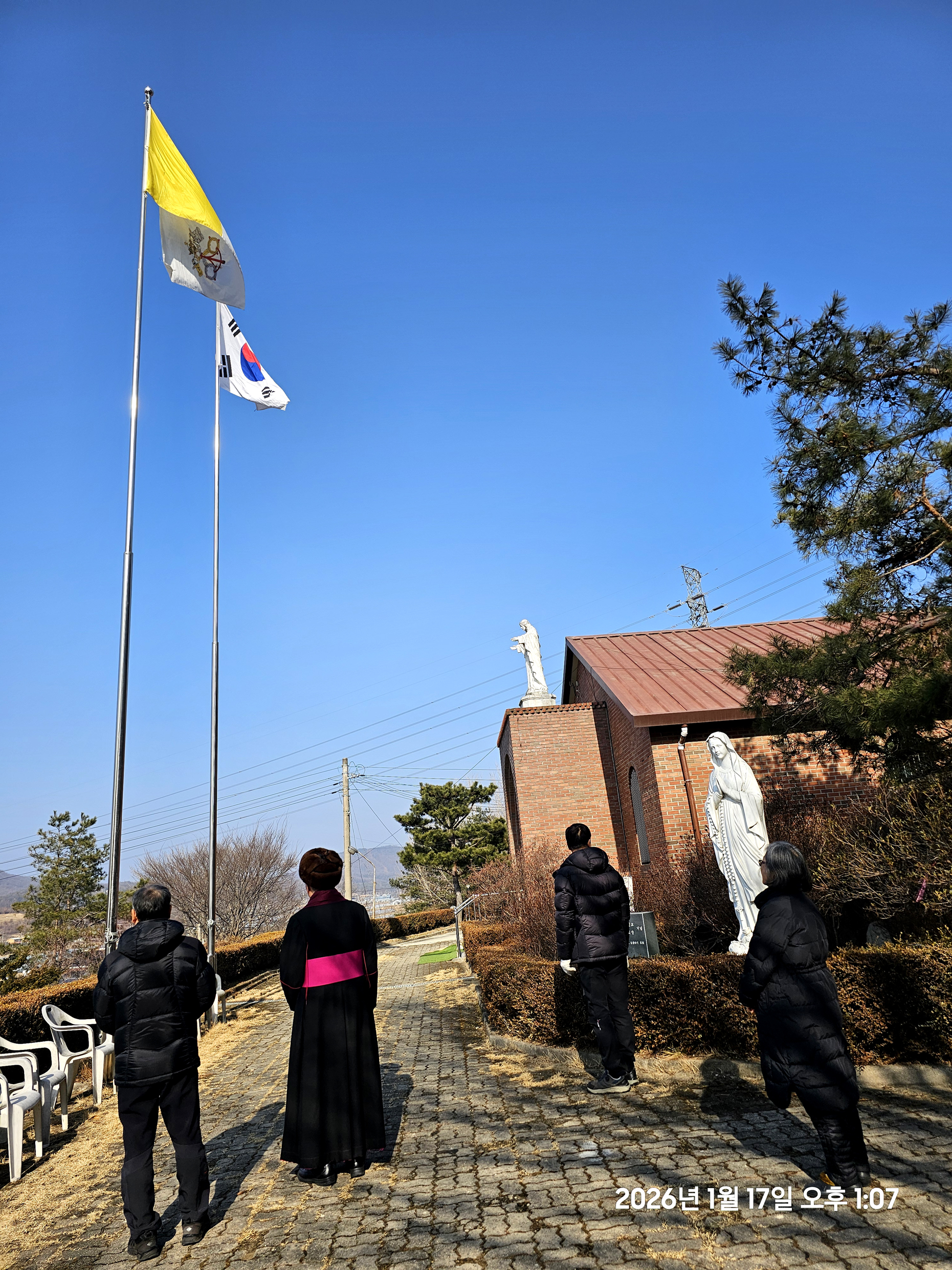 곡수성당, 태극기와 교황기 게양 후 기도와 애국가 제창(2026.01.13)